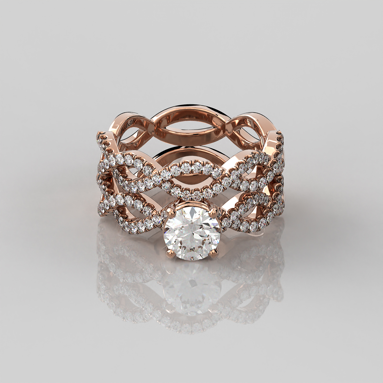 - Round diamond of 1.29 ct. with Clarity SI and Color G-H in a prong and basket setting respectively.